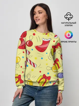 Женский свитшот / Новогодний узор на желтом фоне