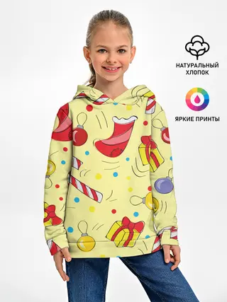 Детское худи / Новогодний узор на желтом фоне