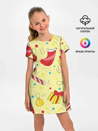 Детское платье / Новогодний узор на желтом фоне