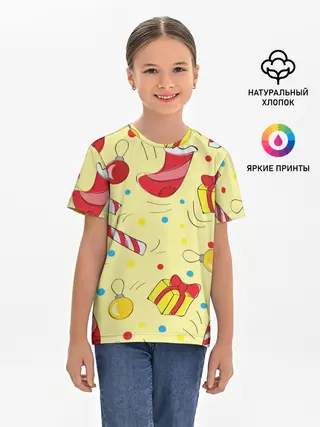Детская базовая футболка / Новогодний узор на желтом фоне