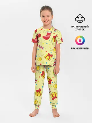 Детская пижама с брюками / Новогодний узор на желтом фоне
