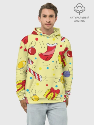 Худи мужской база хлопок / Новогодний узор на желтом фоне