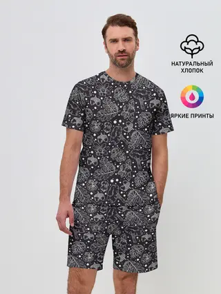 Мужской костюм с шортами / Паттерн «Ночной лес»