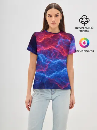 Женская футболка оверсайз / Молнии: Огонь и лед