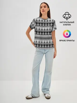 Женская базовая футболка / Черно-белый орнамент