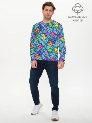 Мужской лонгслив базовый / Неоновый яркий абстрактный узо