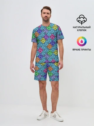 Мужской костюм с шортами / Неоновый яркий абстрактный узо