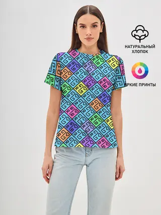 Женская базовая футболка / Неоновый яркий абстрактный узо