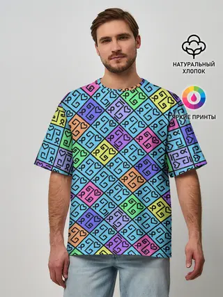 Мужская футболка оверсайз / Неоновый яркий абстрактный узо