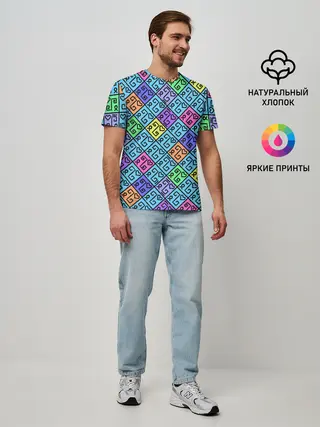 Мужская базовая футболка / Неоновый яркий абстрактный узо