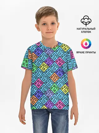 Детская базовая футболка / Неоновый яркий абстрактный узо