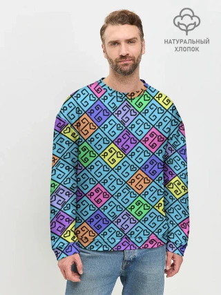 Мужской свитшот базовый / Неоновый яркий абстрактный узо