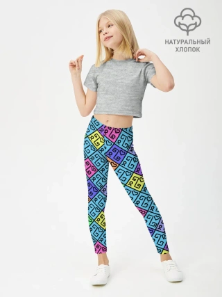 Леггинсы для девочки / Неоновый яркий абстрактный узо