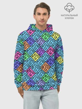 Худи мужской база хлопок / Неоновый яркий абстрактный узо