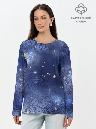 Лонгслив женский. Хлопок / Небо в стиле Стимпанк