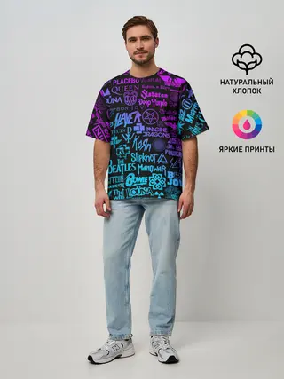 Мужская футболка оверсайз / ЛОГОТИПЫ РОК ГРУПП