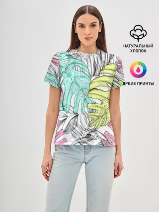 Женская базовая футболка / ТЕКСТУРА ТРОПИКИ