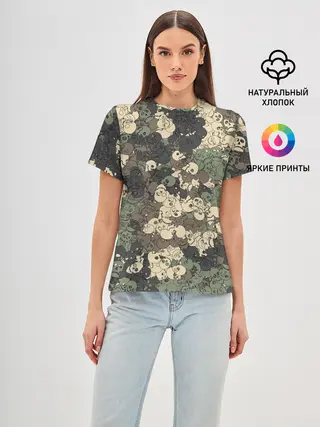 Женская базовая футболка / Камуфляжный рисунок из черепов