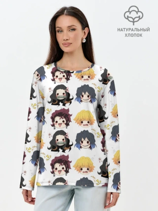 Лонгслив женский. Хлопок / Клинок, рассекающий демонов