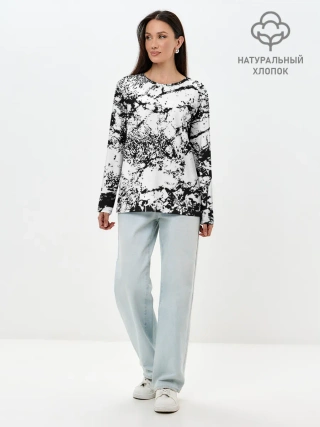 Лонгслив женский. Хлопок / Эффект линогравюры
