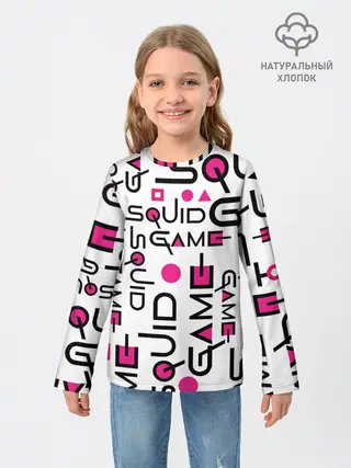 Детский лонгслив / ИГРА В КАЛЬМАРА УЗОР И ПАТТЕРН ЛОГО