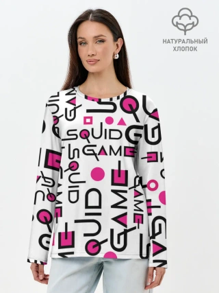 Лонгслив женский. Хлопок / ИГРА В КАЛЬМАРА УЗОР И ПАТТЕРН ЛОГО