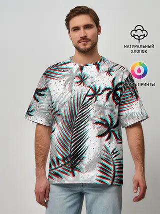 Мужская футболка оверсайз / ПАЛЬМЫ | TROPICAL GLITCH
