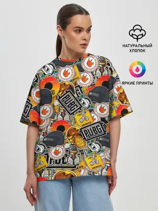 Женская футболка оверсайз / PUBG STICKER