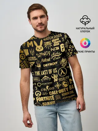Мужская базовая футболка / ЛОГОТИПЫ ИГР ЗОЛОТО | GOLDEN