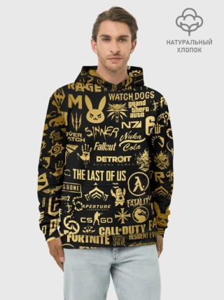 Худи мужской база хлопок / ЛОГОТИПЫ ИГР ЗОЛОТО | GOLDEN