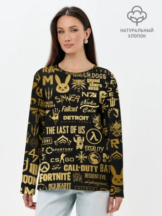 Лонгслив женский. Хлопок / ЛОГОТИПЫ ИГР ЗОЛОТО | GOLDEN