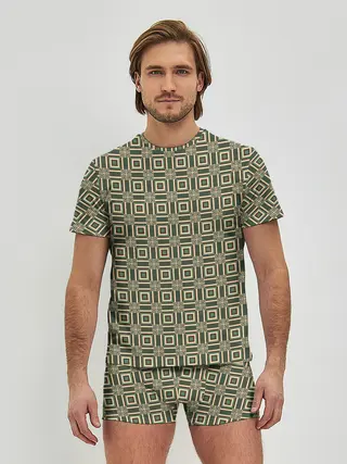 Мужские трусы с футболкой / Абстракция из зеленых квадратов