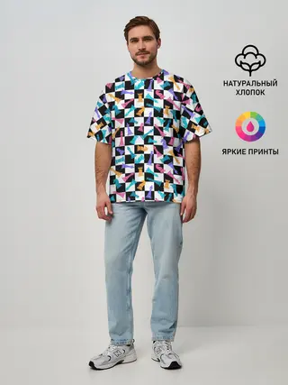 Мужская футболка оверсайз / Разноцветные Шахматные Фигуры