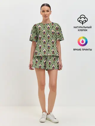 Женская пижама с шортами / ICE SCREAM зеленый паттерн