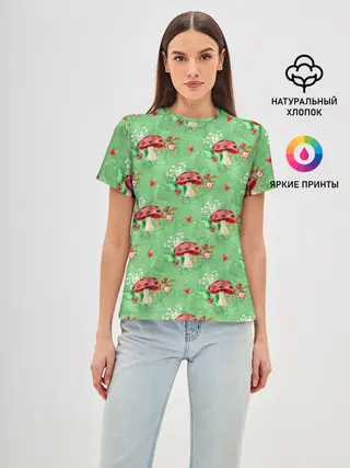 Женская базовая футболка / Грибы Мухоморы паттерн