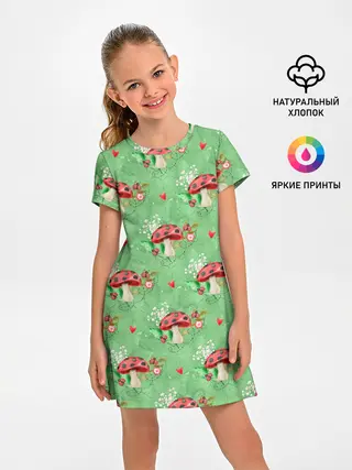 Детская базовая футболка / Грибы Мухоморы паттерн