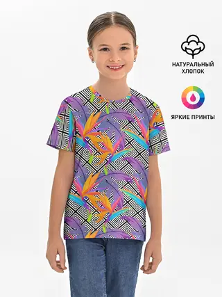 Мужская футболка оверсайз / Тропические цветы и узоры