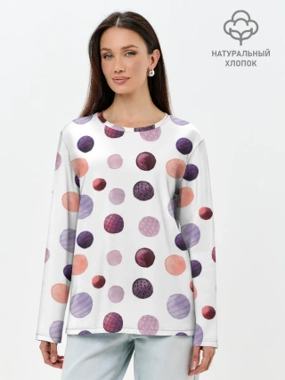 Лонгслив женский. Хлопок / Акварельные сиреневые круги