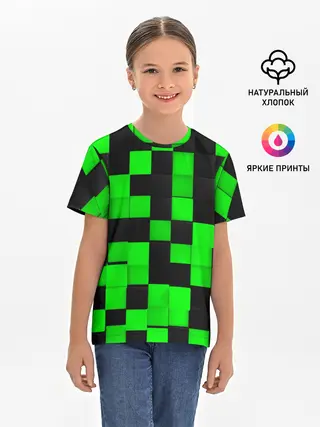 Детская базовая футболка / ЗЕЛЕНЫЕ КУБИКИ