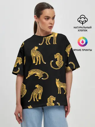 Женская футболка оверсайз / Леопарды