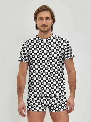 Мужские трусы с футболкой / ШАХМАТНАЯ КЛЕТКА В ГОРОШЕК