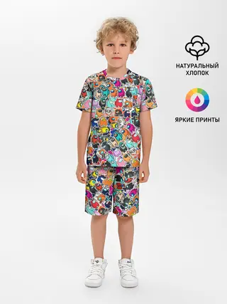 Детская пижама с шортами / Among Us sticker bombing