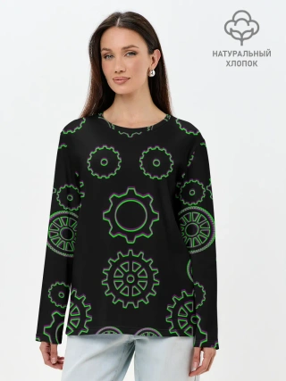 Лонгслив женский. Хлопок / Шестерёнки Стимпанк