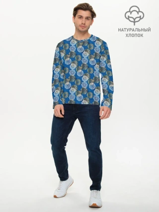 Мужской лонгслив базовый / Разноцветные Новогодние Узоры