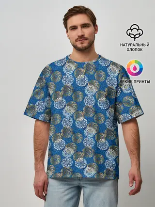 Мужская футболка оверсайз / Разноцветные Новогодние Узоры