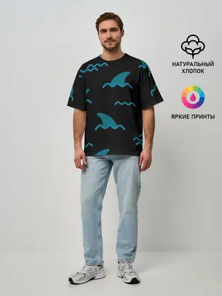 Мужская футболка оверсайз / Плавники акул