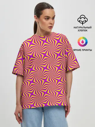 Женская футболка оверсайз / Желто Фиолетовая иллюзия вращения