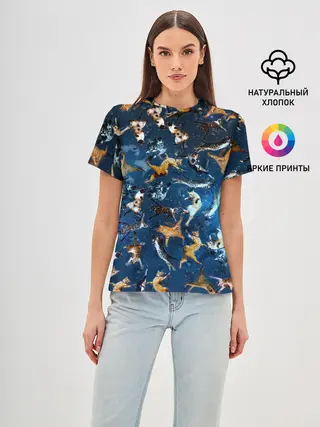 Женская базовая футболка / Космические коты