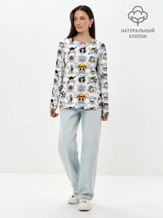 Лонгслив женский. Хлопок / Веселые Роджеры пиратов Соломенной Шляпы