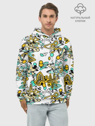 Худи мужской база хлопок / Бирюзово-желтый узор